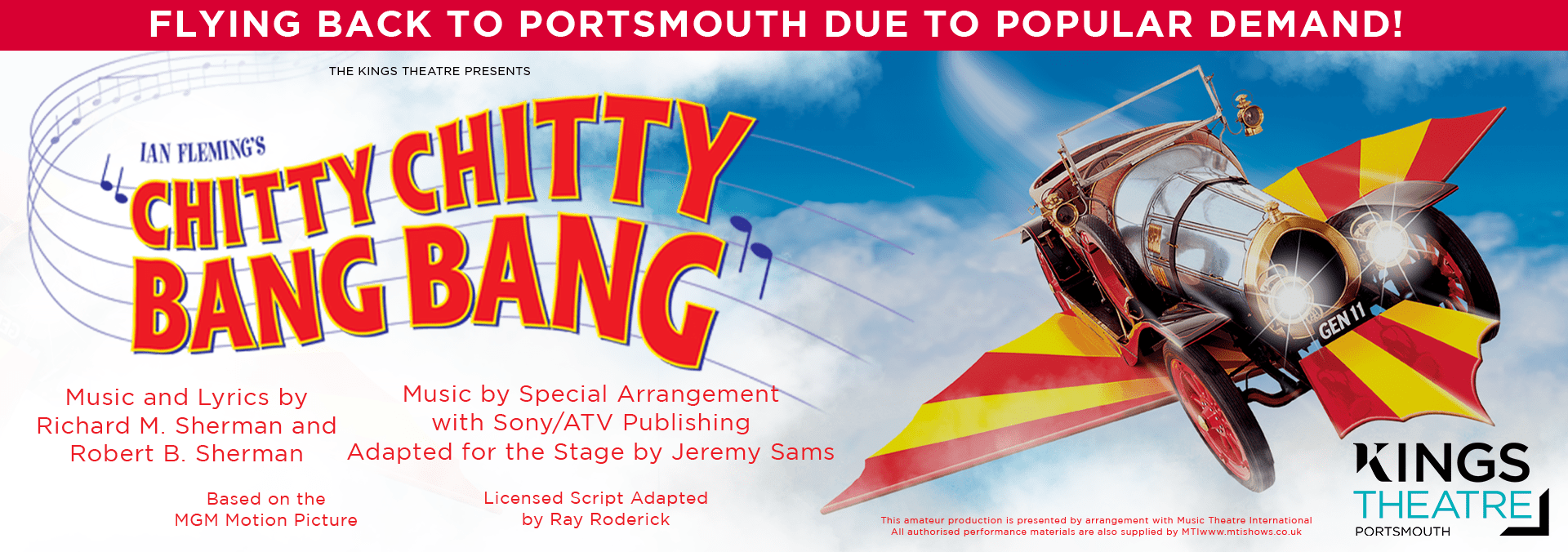 Music and Lyrics by Richard M. Sherman and Robert B. Sherman. Music by Special Arrangement with Sony/ATV Publishing. Adapted for the Stage by Jeremy Sams. Based on the MGM Motion Picture. Licensed Script Adapted by Ray Roderick. This amateur production is presented by arrangement with Music Theatre International. All authorised performance materials are also supplied by MTI www.mtishows.co.uk