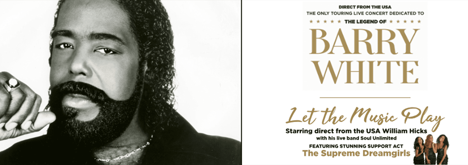 Joined on stage by his live band, Soul Unlimited and support by the stunning Motown Supreme Dreamgirls – with incredible attention to detail, this show has really “got it together” with William coming “as close to the real man himself as is possible.”